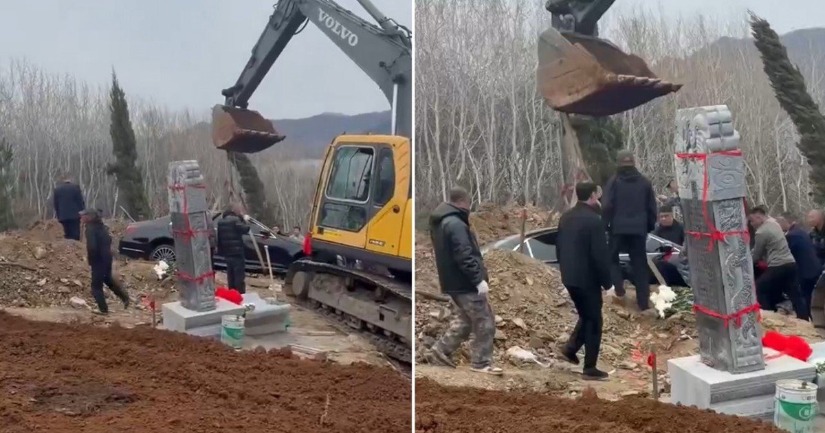 Enterraron un Mercedes junto a la tumba de un hombre fallecido: el video del inusual pedido