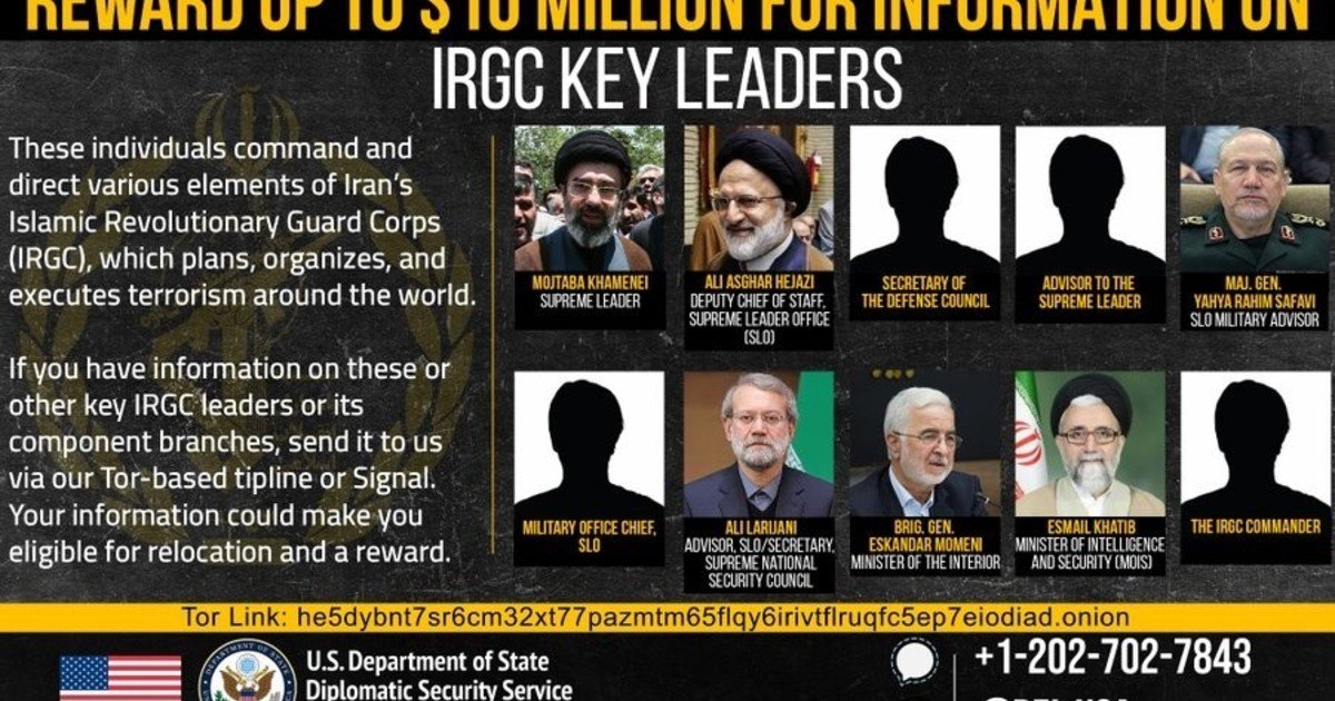 - El Departamento de Justicia ofreció recompensas por información sobre 10 altos funcionarios iraníes.