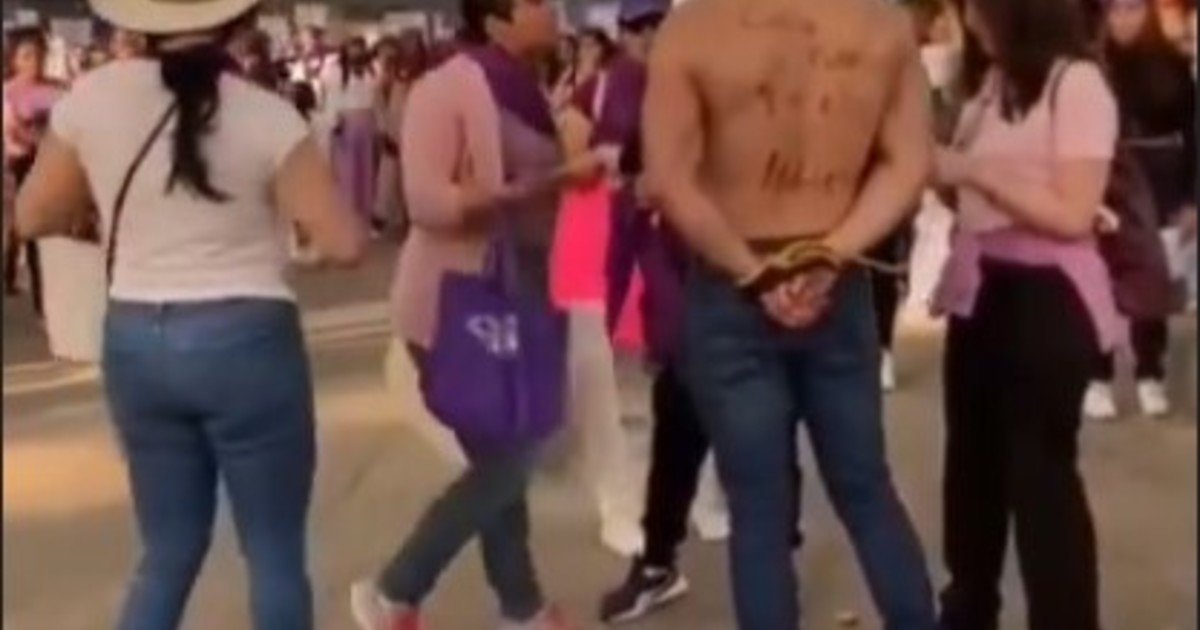 - El infractor había llamado la atención de los asistentes porque llevaba escrita la frase: «Me callo para que ellas hablen» sobre su torso desnudo.